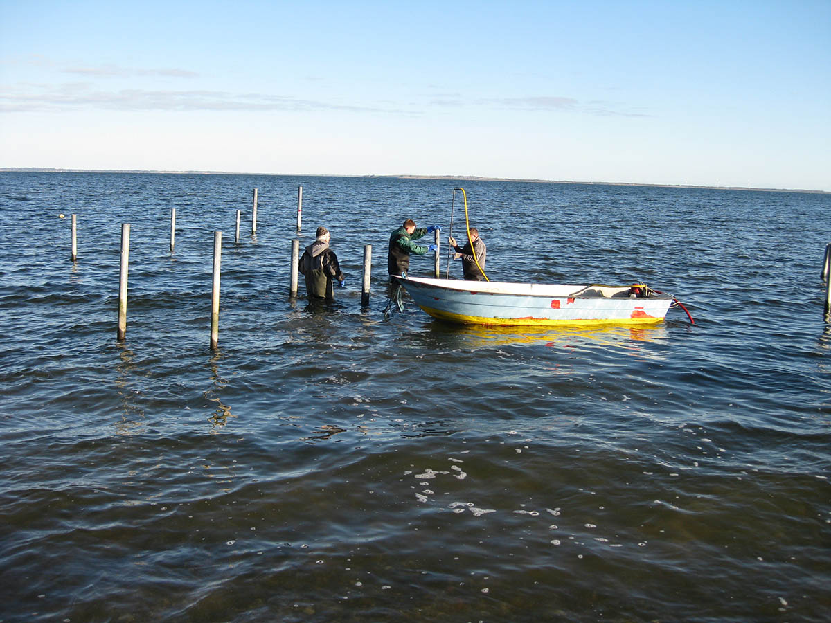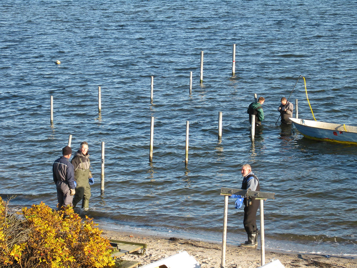 På stranden var der dog en lille tapper skare, som belært af tidligere års erfaringer var i gang med at tage stålpælene til broen op under tilsyn af kontrolmågen.
